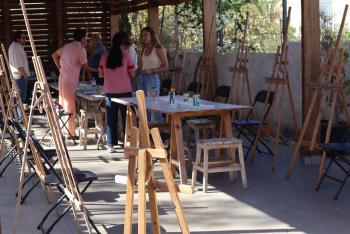 Este martes, acompañada por la concejala delegada de Educación y Cultura, Esther Delgado Sánchez, la pintora ofreció una visita guiada a su exposición para acercar el intimismo sonoro de su obra a los espectadores. Irene Hidalgo también brindó este martes a una veintena de pintores noveles del municipio un taller experimental sobre el uso creativo de capas, transparencias y técnicas mixtas.