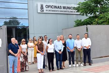 El pórtico de entrada a las Oficinas Municipales del Ayuntamiento de San Bartolomé de Tirajana en San Fernando de Maspalomas acogió este miércoles 24 de septiembre una nueva manifestación de repulsa contra la violencia de género.