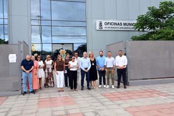El alcalde Marco Aurelio Pérez, junto a la concejala delegada de la Concejalía de Igualdad, Esther Delgado Sánchez, y otros representantes de su gobierno y también trabajadores municipales guardaron un minuto de silencio en memoria de las víctimas.