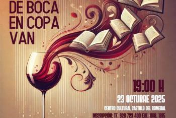 Jueves 23 - 19:00h Centro Cultural Castillo del Romeral - Actividad de Boca en Copa Van - Vino, queso, pan y un narrador. Actividad de la biblioteca requiere inscripción (Tfno.-928.728.377).