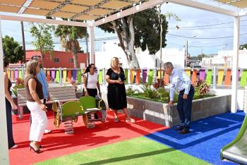 Los ediles responsables del área de Servicios Municipales, Araceli Armas Cruz y Eduardo Armas Herrera, explicaron al alcalde los pormenores de la instalación, cuyas obras se iniciaron el pasado 5 de mayo. Con esta intervención se pone a disposición de los vecinos un parque nuevo, totalmente renovado, en el que se ha cuidado al detalle desde la elección de los elementos de juego hasta los colores y el mobiliario urbano complementario.