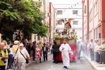 La jornada festiva comenzó con la solemne eucaristía en honor a San Miguel, un acto donde se quiso entregar un pequeño obsequio a Don Manuel Merchán, quien fuera párroco en el municipio, por su cincuenta aniversario de labor pastoral. Un día grande donde no faltó la procesión y los Costaleros de San Miguel han llevado el paso por las calles del casco, en un recorrido emotivo, donde vecinas del municipio acompañaron el paso del patrón con el canto de folías y malagueñas tradicionales.